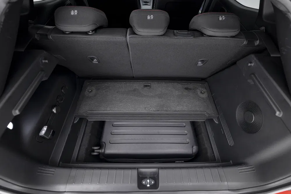 Fini le double écran de 12,3 pouces que l’on retrouve dans pratiquement toutes les autres Hyundai. La Ioniq 3 profite, en effet, d’un unique grand écran central de 12,9 pouces ou de 14,6 pouces en fonction de son niveau de finition. Ce dernier fonctionne également sous un système d'infodivertissement baptisé Pleos Connect et basé sur Android Automotive. Il est également associé à un petit combiné d’instruments digital situé sur le dessus de la planche de bord permettant de se passer d’affichage tête haute. La Hyundai Ioniq 3 conserve également une série de commandes physiques permettant de régler rapidement volume et climatisation. L’autre belle surprise à bord de la compacte sud-coréenne, c’est son coffre de 441 litres en configuration 5 places comprenant une Megabox de 119 l ! Voilà qui devrait largement compenser l’absence de frunk.